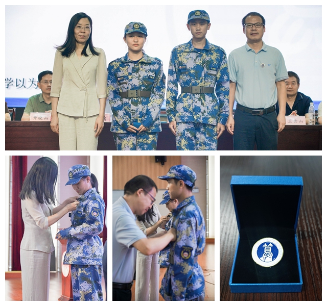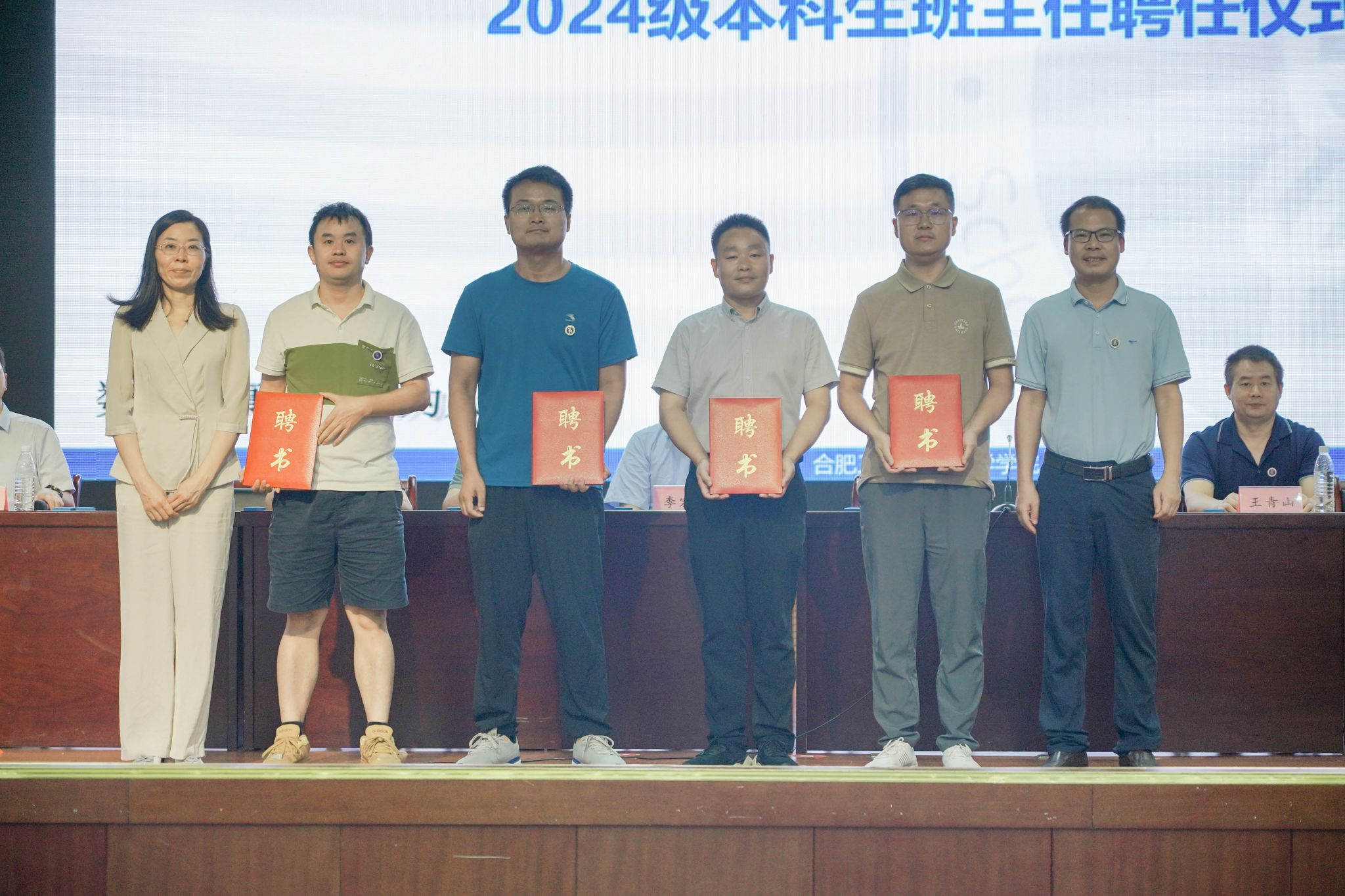 会议伊始,全体起立,奏唱国歌。院长张莉致辞,对新加入数学学院的新生表达了热烈的欢迎,她结合学校概况、学院学科建设与专业发展情况、学院师资力量等,向学生详细介绍了学院的办学历史和教学科研的成绩。她提醒同学们大学是人生的新起点,新征程,通过解读数学专业的发展前景和数学人才的重要性,展示我院优秀校友的成就,并勉励同学们树立远大的理想和目标,脚踏实地规划好大学生活,在享受国家良好教育资源的同时,努力成长为堪当大任的栋梁之才。院党委书记范仁庆宣读了《数学学院2024级新生班主任及朋辈学伴聘任名单》,并为新聘班主任颁发了聘书。聘任仪式后,教师代表罗肖、学生代表林雨阳、新生代表辛梦源依次发言。院长张莉和党委书记范仁庆为新生代表佩戴院徽,台下新生同步佩戴院徽,宣告自己成为一名工大数学人。典礼最后与会全体师生在科教楼A座合影留念。